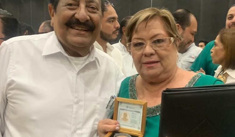 Asi ante diferentes condecorados con este que si es un privilegio personal ,la reconocida maestra , Minerva Anaya Lopez , recibe la importante premiacion esperada por muchos , le decia de esfuerzo , entrega , vocación y trabajo conjunto.
