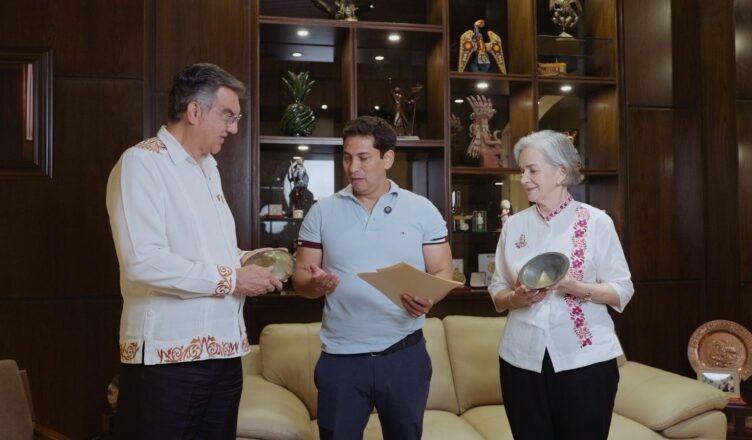 Junto con la doctora María de Villarreal, presidenta del DIF Tamaulipas, el gobernador agradeció las gestiones realizadas ante el Vaticano para lograr la bendición papal de ambas piezas que formarán parte de la escultura de más de 32 metros que se entregará el próximo 12 de diciembre.