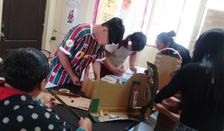 Durante el taller, las y los participantes trabajaron en equipo para crear manualidades con material reciclado, ejercicio que permitió reforzar la convivencia grupal, la cooperación y el compañerismo.