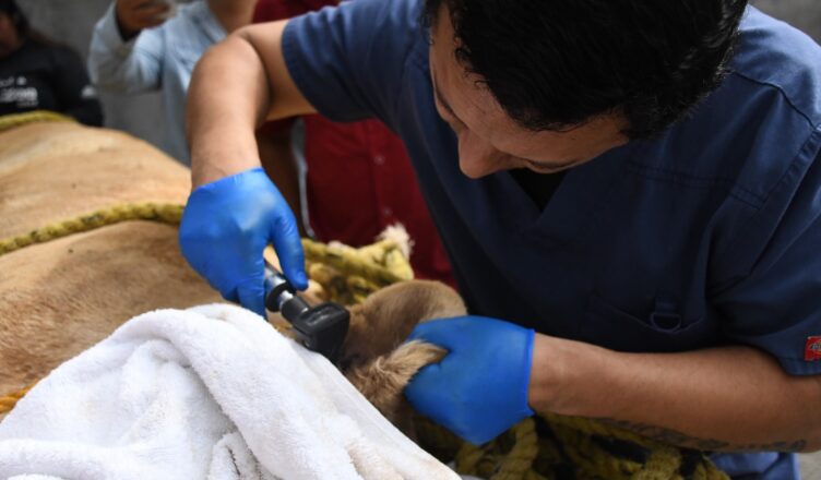 Durante las evaluaciones realizadas por especialistas se identificó una afección en uno de sus oídos, así como una pequeña masa que está siendo analizada por el equipo veterinario para determinar su origen.